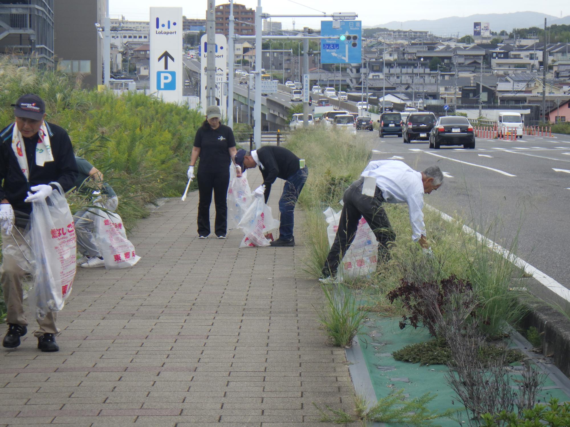 瀬戸大府線周辺やららぽーと周辺を歩き、ポイ捨てごみ禁止の啓発と歩道のごみ拾いを行いました。