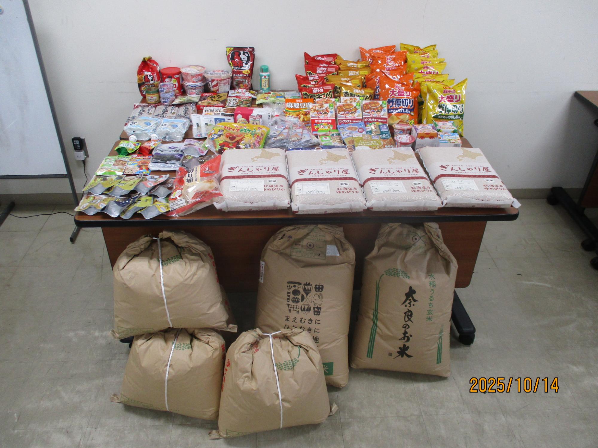 令和7年10月1日(水曜日)から実施していたフードドライブ及びお下がり学用品受付は、10月10日(金曜日)をもって終了させていただきました。みなさまのご協力により、集まった食品は127点、またお下がり学用品は40点となりました。