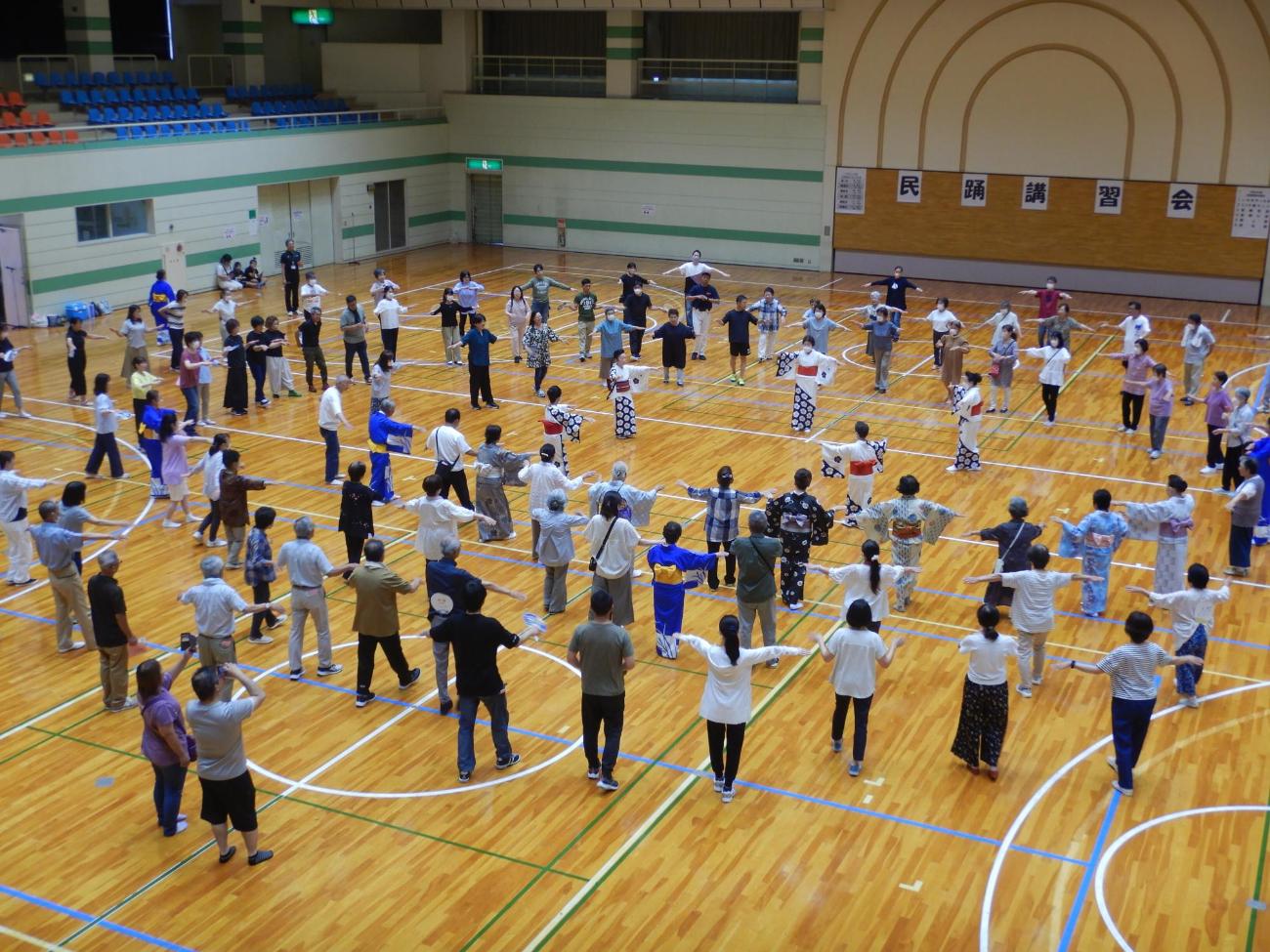地区の盆踊りや町民納涼まつりに先駆けて踊りを楽しみながら、今年の課題曲を練習します。